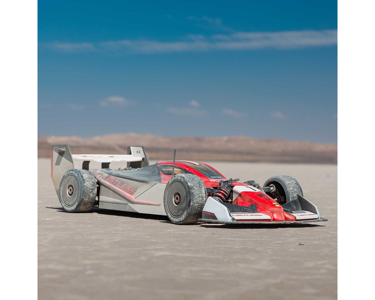 This ready-to-run version of the LIMITLESS includes a low-drag body that’s factory-finished in a choice of color options. Wing trim lines can be used to reduce downforce. The full-width front splitter improves traction and handling, and a large rear diffuser reduces turbulence and drag. Use the high-speed pinion with the supplied optional center spool and trimmed Aero package for incredible 120+ mph speed runs!