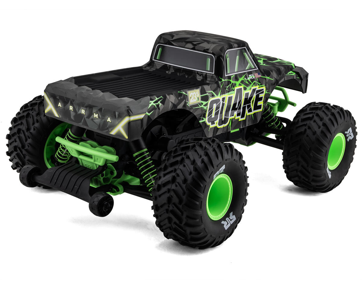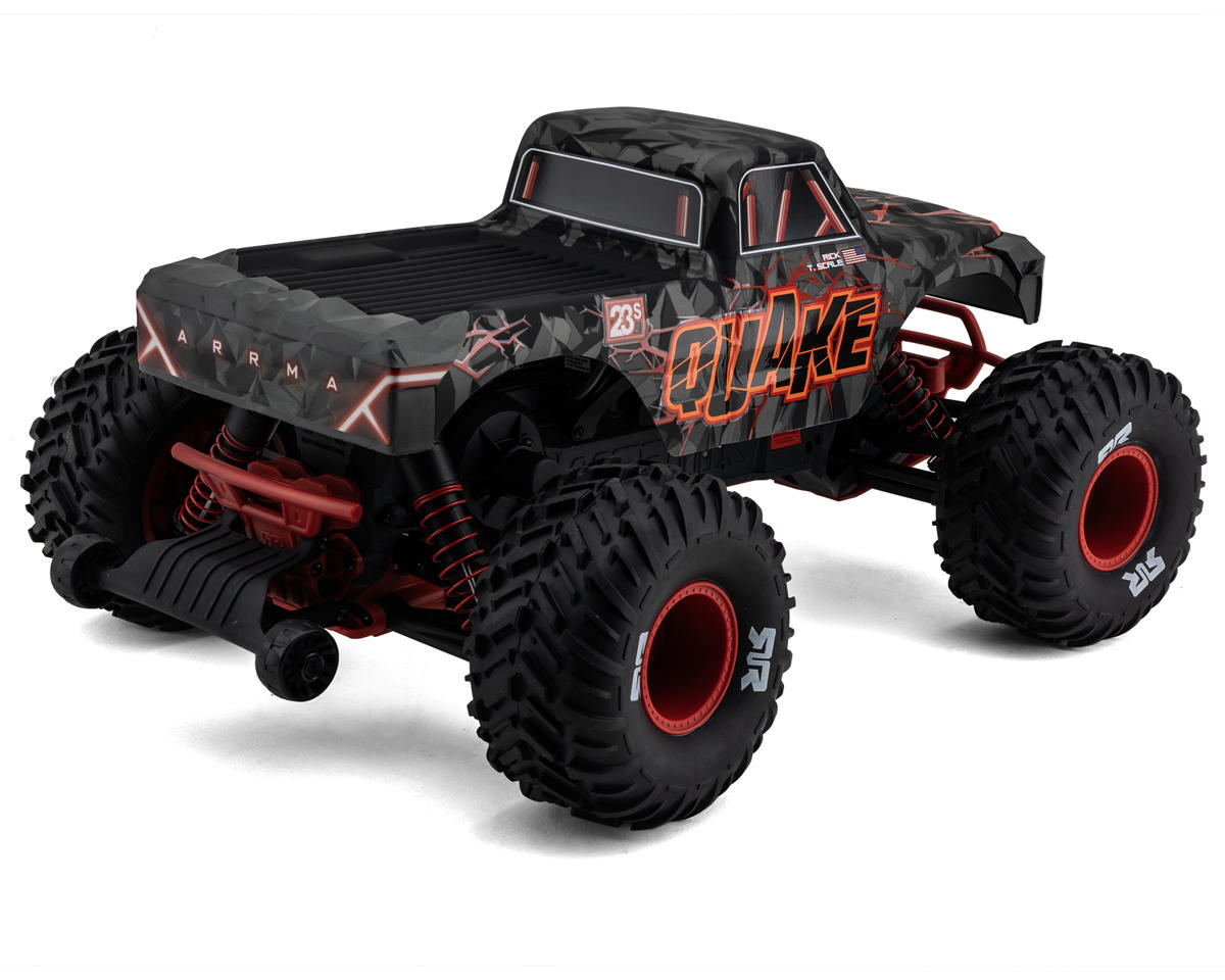 The Arrma Quake 223S DSC 1/10 RTR 2WD Brushless Monster Truck delivers everything you want in a first monster truck — wild speed, serious durability, and hassle-free RTR convenience. With a factory-installed brushless system capable of 35+ MPH on 2S and 50+ MPH on 3S, it’s ready for outrageous performance right out of the box. Throttle limiting and Dynamic Stability Control (DSC) give new drivers confidence while seasoned bashers can disable assists and go full send. A rugged drivetrain, long-arm suspension, waterproof electronics, and aggressive styling make this truck the ultimate gateway into hardcore bashing. No upgrades needed — just charge up and blast off.